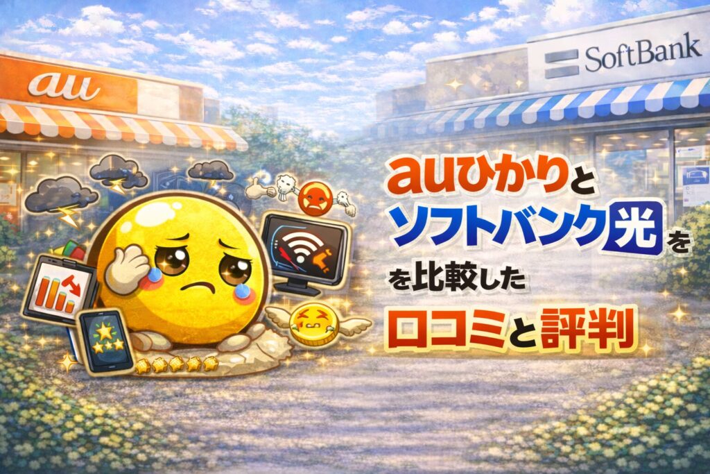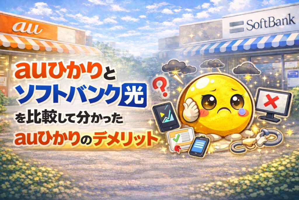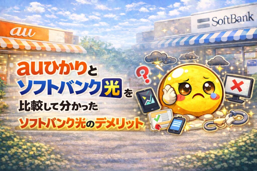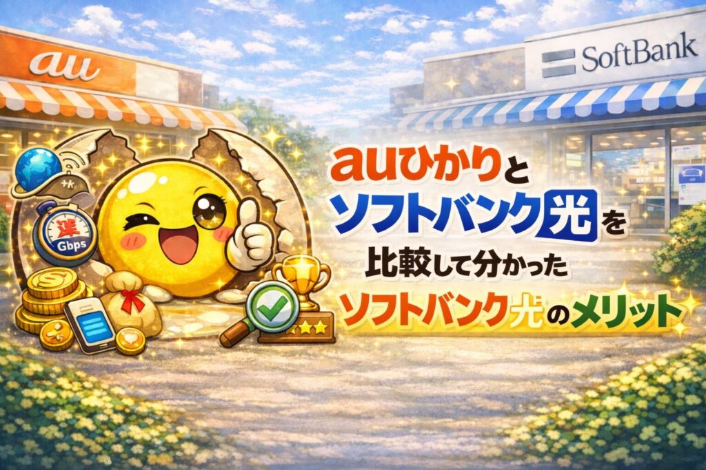 そこでこの記事では、auひかりとソフトバンク光の料金・通信速度・口コミなどを比較しながら、どちらがおすすめなのか分かりやすく解説します。