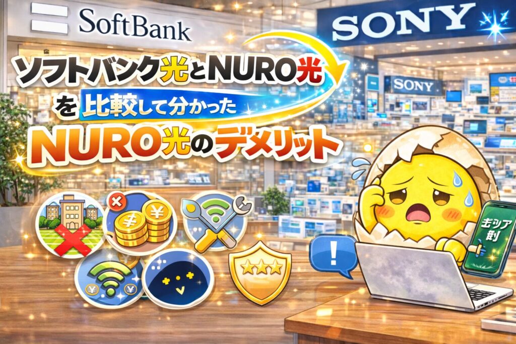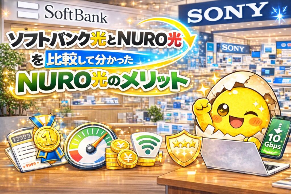 この記事では 「ソフトバンク光 NURO光 比較」 をテーマに、料金・通信速度・メリットデメリット・口コミまでわかりやすく解説します。